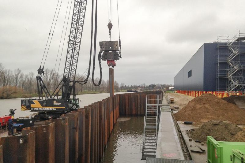 - Het aanbrengen van ruim 300 m1 stalen damwand;